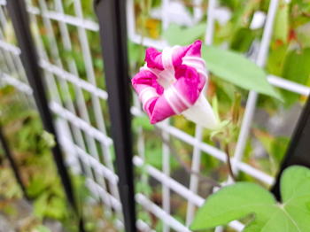散歩の途中で見かける朝顔の観察。今朝は、みっつの花が咲いていた。それぞれの花の色が鮮やかで、とても綺麗で、、ちょっと元気をもらった。 |