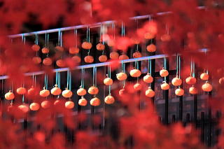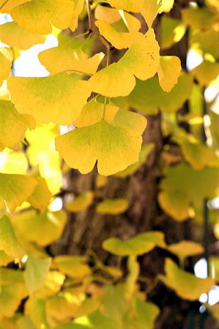 お寺というのは、境内には撮っておこうとおもう素材がいっぱいある。どの方向を矩形に区切っても色鮮やかな風景がみられます。画像は、境内にある大きなイチョウの木と、たぶん、坊守さんが作られたものでしょう。干し柿が綺麗でした。
