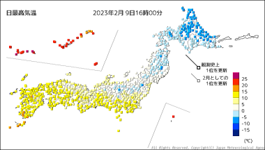 晴れていたが、昨日より気温は低かった。画像は、気温の色分布だけど、、こんなに綺麗に色が別れているのも、この時季の特徴なのだろう。
