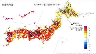 昨日の雨空と比べて、真っ青な青空が広がり、とっても暑く感じた。それもそのはず、、今日の最高気温は、25℃で今季最高。岐阜市以外では、ほとんどの地点で、3月の観測史上初の最高気温となった。もうは花粉のことなど云ってられない、、助手席の窓は、80%、運転席側の窓は50%開けて走っていた。