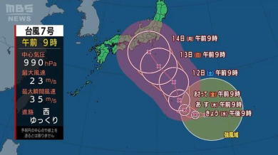 今日も雲の多い時間がほとんどの一日だった。風もあって、過ごしやすいときもあったが、、最高気温は34.4℃で暑かった。台風6号が、九州の西の海上を北上していたわけで、この地方でも不安定な空模様になったらしい。しかも、北陸地方では、フェーン現象で気温が高くなり、夜もどこも熱帯夜となってしまっているらしい。また、気がかりなのは、台風7号の動きだ。このまま予想進路を進んでいけば、お盆休みの真っ只中に上陸する恐れもある。 |