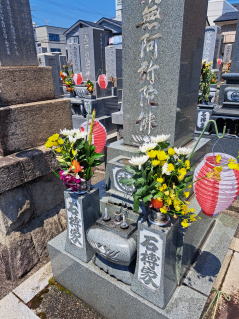 お墓参りを済ませてきました。昨日、叔母のお葬式でお供えしてあったお花をいただいてきていたので、今年は豪華です。猛暑・酷暑・炎暑で、熱中症寸前の状態になってしまい、無事に家に帰ることができるか?怖かったです。なんとか?家に帰りつき、何杯も麦茶をがぶ飲みし、エアコンが効き始めたので、なんとか回復しました。以来、もう外出はしたくなくなり、エアコンの部屋にこもっていました。夕方から、空模様が怪しくなり、ゴロゴロと雷鳴が聞こえてきています。いったん、エアコンを切ってみたんですが、、とても我慢できません。すぐに、ONしました。今日の最高気温は、38.7℃でした。 |