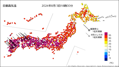 | 今週は月曜日に浜松で40度を体験し、その後も、連日猛暑日の連続で、今日の週末を待ち望んでいた。今日の最高気温は、38℃。岐阜県内のほとんどの地点で、今季最高気温を記録した。 |