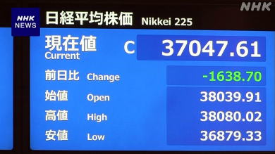 閑話休題。またも、日経平均株価が、大幅下落した。歴代5位の下げ幅で、1638円安くなった。天気と同じように、不安定な株価となっている。世界的な経済が大きく影響するのは分かっているが、こんな急激な下げ幅は異常じゃないだろうか。 |