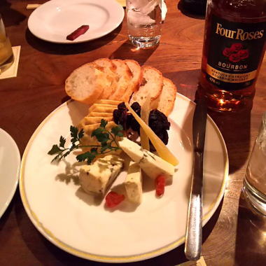 展覧会場で学友や出品者と絵の制作や姿勢について、しばらくお話ししたあと、、その後のことが今夜のメインになりました。伏見の居酒屋で酒を飲み、二次会は、同じ伏見にある英吉利屋で、ブルーチーズとワインで乾杯、楽しい夜を過ごしました。