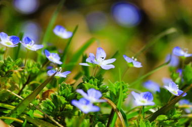 朝の散歩のときは寒かった。が、これは晴れることの前兆のようなもので、今日は雲ひとつない青空が広がり暖かくなった。こんな天気の日は、さっそく布団干しの日だ。朝の散歩は、満開のサクラ並木のなかを歩いてきた。見上げてばかりでなく、足元には瑠璃色の小さな花を見つけた。「星の瞳」とも呼ばれる「おおいぬのふぐりだ。