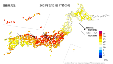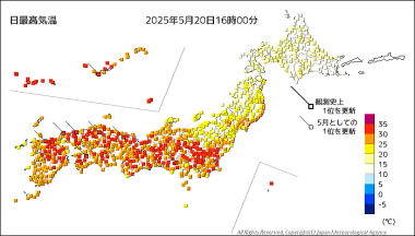 昨日よりさらに高い最高気温、曇り空だったのに、31.8℃。全国ランキングで一位になったのは、飛騨市神岡の35℃。山間の町が…。しかも、まだ5月なのに…。
