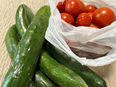 今日も酷暑でした。三日連続の猛暑日となった。驚きなのは、北海道も異常な最高気温となってる。北見地方では、38.2℃と岐阜よりも高い。ニュースを見ていると、北海道:北見のお宅では、クーラーを置いてないところが多いらしい。もう仕事にならない。昨日に続いて早くに帰宅したら、玄関に、いただきもの。きゅうりにトマト。大好きな野菜だ。さっそく、きゅうりとトマトのサラダ。輪切りにして、きゅうり割り焼酎にも使おうっておもっている。そして、今年の夏、何回?食卓に登場したのか?