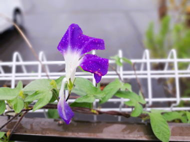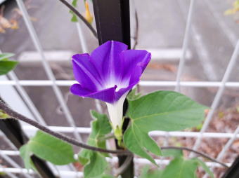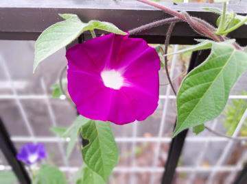 閑話休題。ブログの方で、「朝顔観察日記」というのをやっているんです。ご近所の朝顔を育てていらっしゃるのを観察しているんですが、日曜日の観察では、つるだけは元気で伸びている様子をみていたが、今朝見ると、三個の花が咲いていました。驚きと感動の朝になりました。こんな色の朝顔だったんだ!と思い、綺麗な色の朝顔が見られて嬉しい朝になりました。 |