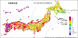 久しぶりに雨の朝。その雨も降ったりやんだりの静かな雨だった。曇り空で気温は、このところのような暖かさではなかった。その代わり、画像で見られるように、福井や金沢・富山では、驚くほどの高い気温になったようだ。