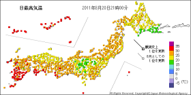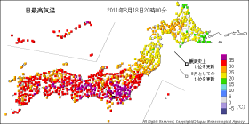 18日の気温色分布と今日と、、、わずか2日でこうも変わってしまうのか!涼しさより寒さを感じてしまう。 |