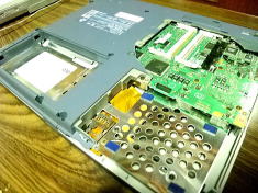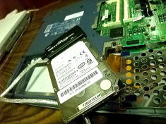 こうなってしまうと、残る楽しみは分解作業。細いドライバを使って背面のビスを取って裏蓋を取る。CDドライヴ・電源バッテリなどを取り外し、拡張メモリも取り外す、、、そして、まだ十分動いて使えるハードディスク・ドライヴ、ノートPCだけに、ものすごく小さく薄っぺらなモノである。これに、先日買った USB←→IDE&SATAケーブルを繋げてみた。よっし!壊れてしまったノートPCのデータが蘇った。 |