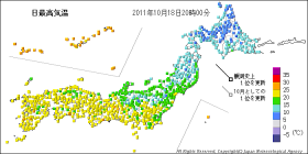 最高気温が25℃。汗も出ず寒くもなく、得意先でお茶をご馳走していただいて、それが喉の渇きを潤し、美味しい時期でもある。日本列島の気温色分布を見ていると、、、北半分は冷たい空気となっているようだ。