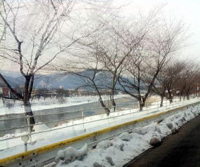 今年も早朝より北の国への出張モード。なにしろ交換しているスタッドレスタイヤは見かけだけのもので、溝は無くツルツルのタイヤだけに、雪道は怖いと思っている。幸いにも、今週は暖かい日がつづいているので、心配していた雪も凍結もなく順調に走ることができた。ただ、道路の両側や日陰、屋根の上には、たっぷりと雪が残っていた。これでも、今年は雪が少ない…と嘆いていらした。 |