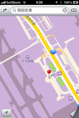 の方が断然使いやすい。ネットでも問題になっている、、「企業やランドマークの名称表示がずれている」「道路がない」「羽田空港を検索しても何も出てこない」などの苦情。羽田空港を検索しても大王製紙が表示されてしまった。