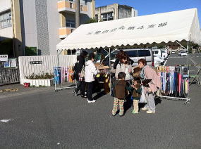 年に一度の地元自治会連合会が主催する「楽市楽座」の販売日。天気予報通りの温暖な小春日和。すぐ隣の小学校も今日に合わせて参観日となっているので、人手はとても多い。この三里小学校、、、児童者数:850人を超える岐阜市(岐阜県)では最大のマンモス校となっている。マンションが立ち並ぶ地区ならでは…である。駅にも近いし、近くにショッピングセンターもあるし、小学校や中学校も近くにあるし、、、岐阜市ではいちばん住みやすい地区となっている。 |