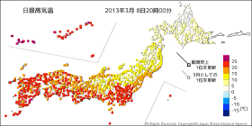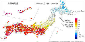 風邪なのか?花粉症なのか?不明だけど、一向に良くはならない。まぁ!花粉症であれば、この苦しみはまだ続きそうだけど。今日は、もう桜の花も開花しそうな暑さだったのに、北国ではまた猛吹雪だったようだ。気温分布の画像は、この気象状況を如実に表していようだ。