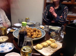 高校時代の友人が集い、友人宅で観桜会の飲み会。美味しい手作りの料理とお酒、時間をわすれるくらいの楽しい語らいの集いだった。 |