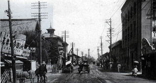 閑話休題。さて、、、超古い岐阜市街地の風景。神田町通り。左側の塔は、岐阜郵便局。この当時から、ここにあったんだ。 |
