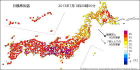 名古屋市では 37.1℃ 多治見市では全国第二位の 38.8℃。たまたま、今日はこのふたつの営業地あたりをフラフラしていた。燃えるように赤く染まった日本列島。あっちっち! あっちっち!! ぐったり! 草臥れている!! へばってもいる‥。7月からこの暑さ!うんざり…。
