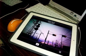 閑話休題。iPADの液晶画面を保護するフィルムを張り替えた。『誰が貼っても絶対気泡ができない』というモノ。昼間、静電気が起きにくい部屋にエアコンをONにして準備、さっそく作業に取りかかった。お見事!気泡がひとつもできない状態で貼ることができた。 |