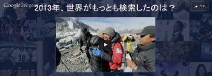 正月三が日も無事終わろうとしている。曜日を忘れるくらいの休みが続いている日々、外に出れば寒い、、PCの前で「ぐぅ〜たら」するしかない時は、、「グーグル…」で遊ぶことにしている。そんななんでもない時間を費やしていると、こんなものを見つけた。わずか、、2分足らずの動画だけど、うまい作りであるし、美しい。 |