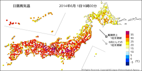 昨日まで、、暑いと感じても30℃に満たない暑さだっただけに、岐阜のこの暑さはうんざりモード。今日の岐阜の最高気温は、35.3℃。ランキングTOP10のなかに、、揖斐川・多治見・美濃・八幡・美濃加茂と5か所もランクイン。冷夏の予報となっているけれども、、まだ梅雨入り前なのに、この暑さ。 |