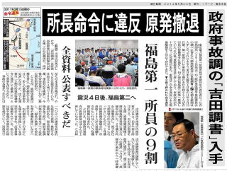 閑話休題。朝日新聞の完敗である。従軍慰安婦、東電原発事故、池上彰のコラム、、、この3点、微妙に結びついている。「原発事故は現場では収拾がつかなかったに違いない」とか「日本軍は悪いことをしたに違いない」などといった先入観を持ったに違いない。ヒトのコトバには必ず「意図」があるはずだ。公平・客観的などという姿勢は表向き。そう思ってメディアに向かわなければならない。いつもメディアに裏切られる一般市民は、ただただ盲信してはならないってことかな。 |