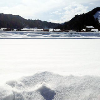 2月になっても雪降りの日があった…と地元の人が云っていた。残雪が多い。でも、、穏やかな陽光が輝きを放っていた。 |
