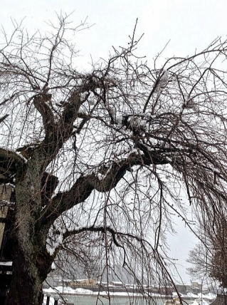 岐阜市の空は だったようだけど、、営業地では 。驚くべき寒さだった。時折、ミゾレやアラレまで音をたてて降りだす始末。もうあと、2週間あまりで「祭り」がある営業地、、信じられない寒さだ。 当然。蕾はまだ堅い。。 |