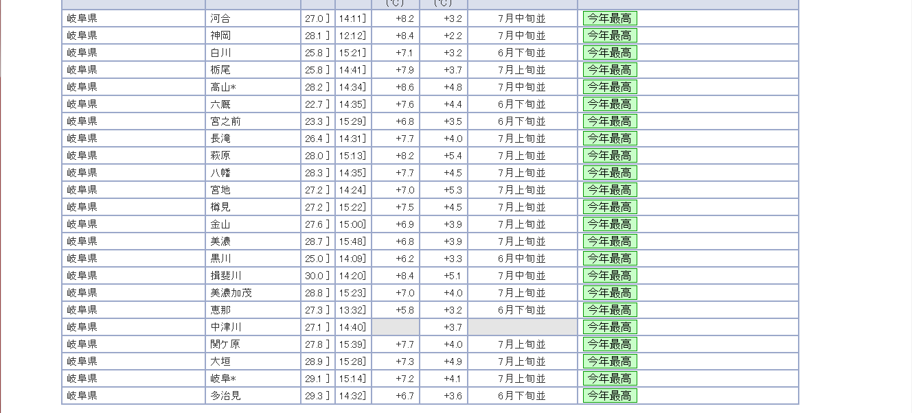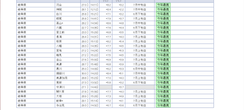 どの地点も「今年最高気温」。揖斐川町では30℃。 |