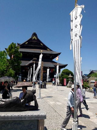 昨日の雨は夜半にやみ、今日はまさに五月晴れ! 2011年のこの連休中から始まった、母を連れて行く寺社参り。今年も、祖父江の善光寺と海津市のお千代保稲荷に行った。驚いたのは、善光寺。去年までは、駐車場の車も人もまばらな状態で、のんびりとお参りすることが出来たのに、今年は駐車場に誘導員がいるくらいの混雑だ。7年に一度のご開帳の年になっているからだろう。お寺の様子もいつもとまったく違う。ニュース番組で見る「長野の善光寺のご開帳」とまったく同じ…。本殿のまえには前立本尊が建てられ、本堂のご本尊と白い紐でつながれている風景は善光寺ならではだ。そして、車を走らせお千代保稲荷に…。ここは毎年同じ混雑だった。有料駐車場に車を停めることも待たなければならない。ここでも驚いたのは、大きな靴屋さんが開店していたこと。そこが繁盛していたことも驚きだった。この靴屋さん、いったい誰が店を開いているのだろう? |