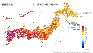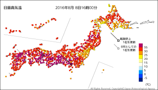 今日も酷暑。画像の温度分布を見ると、西日本の方が暑くなっているのがよく分かる。