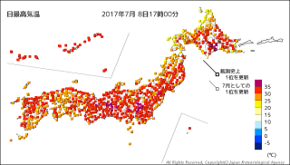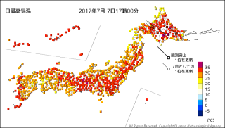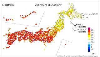 昨日の上の画像と見比べると、、異常な暑さだったことが分かる。岐阜市では、今年初めての猛暑日 35.5℃のだった。その最高気温が観測されたのが、、午後4時過ぎ…だった。とにかく週末…。帰宅して、とにかく冷たい飲み物…。 |