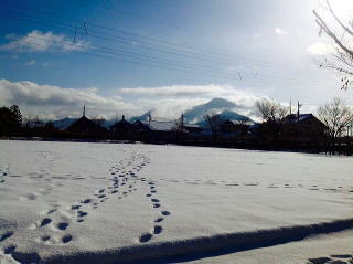 大雪だった地方へ営業ラウンド。営業地に着くまでの道中、朝早いこともあって所々で路面が凍結していた。そして、営業地では30㎝は積もっていた。画像を撮ったときは、青空が広がっていたが、、すぐに黒い雲におおわれ雪が降り出す空模様に変わった。 |