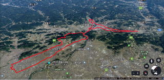 GPSロガーを一日中ONにして使ってみた。ロガーの軌跡を表示出来る CANWAYで表示された軌跡と、このソフトでエクスポートされた軌跡を GoogleEarthで取り込んだ画像。かなり正確に移動を補足している。 |