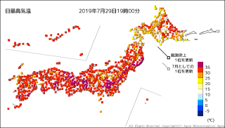 相変わらず空気中に湿気を多く含み、さらに気温は35℃以上の暑さ…。帰宅してすぐにエアコンをONにした。今日の最高気温ランキングの1位は揖斐川町の37.2℃。つづいて、岐阜市の36.6℃。今年の夏の暑さを記述しているが、去年の方がはるかに厚かった。去年の今日:7月29日を見て7みると、、、なんと!!