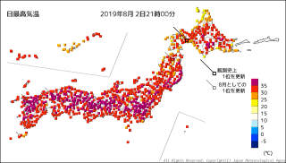 閑話休題。今日の最高気温ランキングを記しておこう。1位:美濃市の38.4℃。2位:多治見市の38.3℃。4位:岐阜市の38℃。10位:美濃加茂市と揖斐川町の37.3℃。今日は、ランキングトップ10の中に、岐阜県の市町が5かになった。 |