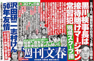 閑話休題。「#検察庁法改正案に抗議します」とTWITTERで反響があり、、国会では、この法案の成立を見送った。定年延長の張本人である黒川高検検事正が、賭けマージャンをしていたことが週刊文春でスクープされ、辞任となってしまった。おバカさん!!