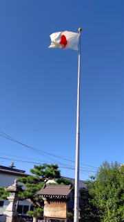 土曜・日曜・祝日 限定の散歩、、今朝も散歩に出かけ、そのまま六條神社の国旗を掲げる当番となっているので六條神社に寄り道。爽やかな北風に揺れて綺麗にたなびいている。そして、夕方になって後片付けに…。明日も祝日なので、当番の方に社務所のカギを渡しに走った。 |