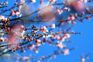 曇り空で陽射しは時折差し込むだけの一日だった。それでも、もう寒さは感じられない。どこをラウンドしていても、梅の花が満開で綺麗だ。