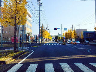 二日間続いた雨は夜明け前にはやんだ。その後、南風が入って暖かくなる予報だったのに、大ハズレ。北風が強くて体感温度は真冬並み。すぐ近くの街路樹のイチョウの黄色い葉が、道路にまで風で落ち、舞っていた。この通りに面している家の方は、歩道の落ち葉を掃除するのがたいへんだろうとおもう。 |