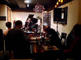 閑話休題。JAZZライヴは、ピアノとテナーサックスのふたりの演奏。バラードを聴いたあと、、ウクライナの「ひまわり」と「comecome-evrybody」も聴かせてくれた。 |