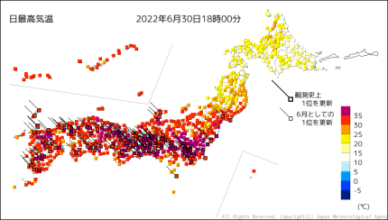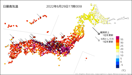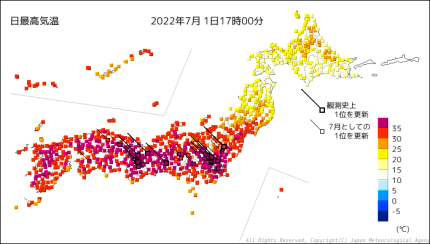 閑話休題。今回の熱波は、関東地方に影響があって、群馬県や栃木県、東京都に最高気温ランキングが集中している。電力逼迫が叫ばれていて、東京電力では、電力注意報のようなものが出されたらしい。熱中症注意報ではないみたいだ。 |
