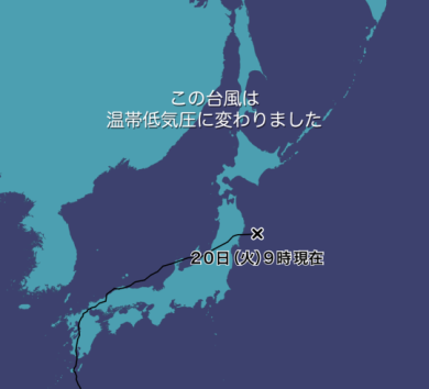| 朝、風が強くなっていた。この地方にいちばん影響があるのは、今日の夜から明日の朝にかけての予報だ。 |