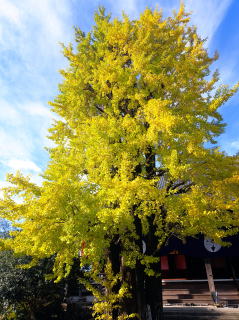秋らしい横に伸びた雲が浮かんでいるすっきりと晴れ朝の散歩でした。帰ってから、そんなにのんびりしていられない朝です。9時半から始まるお寺の報恩講に行きました。この報恩講の時季は、お寺のランドマークとも云えるイチョウが綺麗に黄葉しています。母の後に仏教婦人会の会長をされた方で弔辞もいただいた方の隣の席に座ることができ、母のことをいろいろとお話ししてもらった。